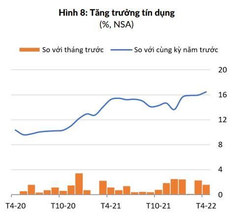 Điểm đáng chú ý là tăng trưởng tín dụng được đẩy mạnh để đáp ứng nhu cầu đang ngày tăng cao. Cụ thể, tăng trưởng tín dụng tăng tốc từ 15,9% trong tháng 3 (so cùng kỳ năm trước) lên 16,4% trong tháng 4 (so cùng kỳ năm trước), tốc độ cao nhất kể từ tháng 1/2018.