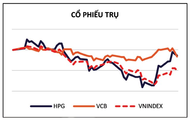 Thứ nhất là dạng cổ phiếu tạo lập, có sức ảnh hưởng mạnh lên chỉ số chung, cổ phiếu này thường tạo đáy trước thị trường với vai trò ổn định tâm lý nhà đầu tư. Giai đoạn hiện tại, VCB và HPG đang là trụ đỡ đóng vai trò như vậy khi cả 2 cổ phiếu đã vượt qua mức đỉnh của nhịp hồi vào tháng 10, trong khi VN-Index vẫn chưa làm được điều này.