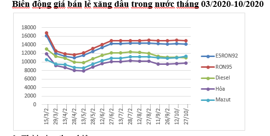 Thời gian áp dụng giá điều chỉnh kể từ 15h ngày 27/10/2020.