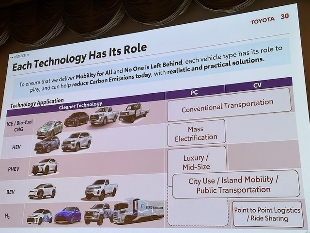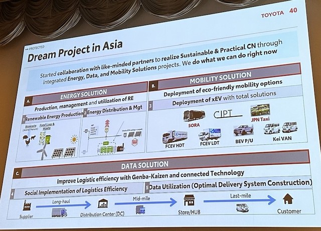 Với trường hợp cụ thể là châu Á, Tập đoàn Ô tô Toyota cũng cho rằng, đây là nơi có nhiều yếu tố đa dạng, ảnh hưởng đến hành trình hướng tới trung hòa carbon, vì thế công ty đã cân nhắc rất kỹ lưỡng các yếu tố về kinh tế, năng lượng, cơ sở hạ tầng và nhu cầu sử dụng để đưa ra cách tiếp cận toàn diện.