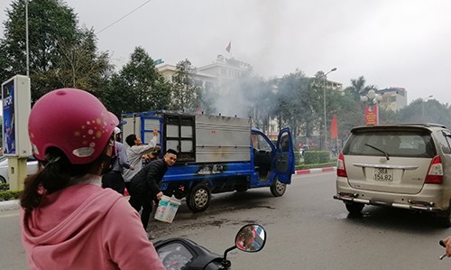 Đầu giờ chiều 1/2, xe tải cỡ nhỏ biển số Thanh Hoá do một người đàn ông điều khiển lưu thông trên đại lộ Lê Lợi hướng vào trung tâm thành phố. Đến gần cầu Đông Hương, thành phố Thanh Hóa, thùng xe bốc cháy nghi ngút. Nhiều người đi đường tri hô tài xế mới biết để dừng lại.