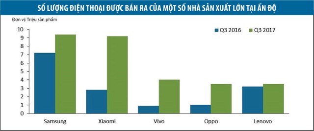 Chiến lược gia Rushabh Doshi tại Canalys, hãng phân tích thị trường công nghệ toàn cầu ra đời năm 1998 nhận định: “Chúng tôi dự báo Xiaomi sẽ tiếp tục bùng nổ tại thị trường Ấn Độ và nhiều khả năng chiếm vị trí thứ nhất của Samsung trong vài quý tới đây”. Hiện tại, Xiaomi chiếm 17% thị phần tại thị trường Ấn Độ, chỉ thấp hơn vài phần trăm so với người đứng đầu là Samsung".