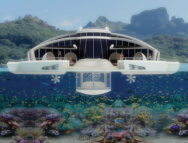 Mới đây, xưởng thiết kế MPD của Italia đã đưa ra mô hình tuyệt đẹp về một căn hộ nổi trên biển khá độc đáo. Resort nổi này có tên gọi là SFR (Solar Floating Resort), hoàn toàn tự cung tự cấp nguồn năng lượng, không gây ô nhiễm môi trường và kiến trúc được tạo hình giống một cụm san hô để hoà nhập tự nhiên cùng với môi trường xung quanh. SFR được thiết kế như một chiếc du thuyền với phần cabin chìm trong suốt để du khách có thể ngắm nhìn cảnh trí sâu trong lòng đại dương.