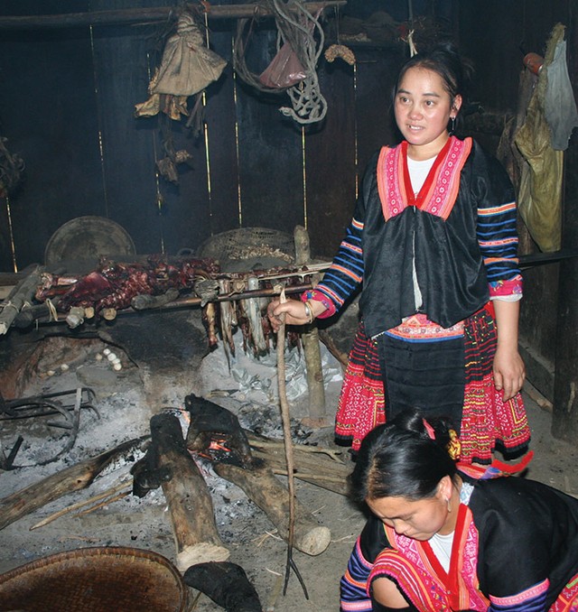 Nhưng không phải cứ vứt thịt lên gác hay treo xung quanh bếp là thịt sẽ đạt tiêu chuẩn. Để miếng thịt chín đều, bên ngoài có màu đen, sờ vào thấy cứng, còn bên trong mềm và đỏ hồng, thì cứ 1-2 tiếng là người ta phải lật mặt thịt một lần. Củi để hong thịt cũng phải chọn những loại cây mọc trên rừng tự nhiên để khói tỏa ra làm từng thớ thịt săn lại, khô hết nước và để được cả năm cũng chẳng hỏng. Bếp củi cũng cần liên tục đỏ lửa để đủ nhiệt làm chín miếng thịt.