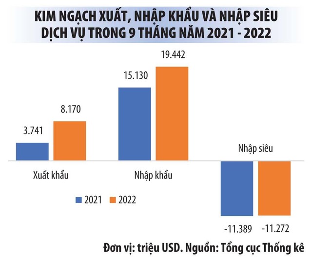 Đặc biệt, nhập siêu dịch vụ khá lớn, tỷ lệ nhập siêu so với xuất khẩu lên đến 138%.