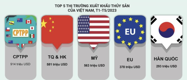 Về các thị trường xuất khẩu, xuất khẩu thủy sản sang Mỹ, EU giảm lần lượt 48% và 33%, sang Trung Quốc giảm 25%, sang Hàn Quốc giảm 21%, sang Nhật Bản giảm 8%.
