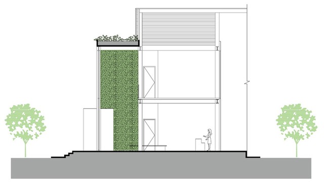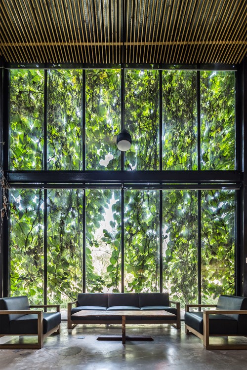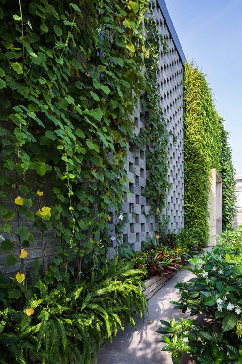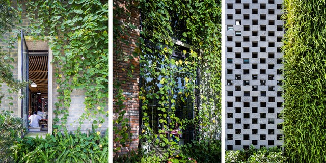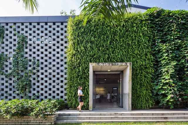 Công trình bỏ hoang biến thành một khối nhà khang trang, có giàn dây leo phủ kín.