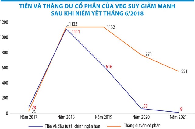 Thặng dư vốn cổ phần cũng giảm từ 1.132 tỷ đồng (năm 2018) về còn 551 tỷ đồng (năm 2021), tương ứng giảm 581 tỷ đồng, do trong năm 2020 và 2021, Công ty dùng thặng dư vốn cổ phần để xoá lỗ luỹ kế.