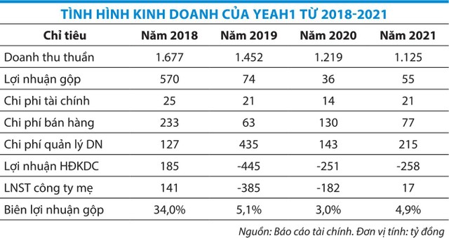 Xét riêng lợi nhuận của hoạt động kinh doanh cốt lõi (lợi nhuận gộp trừ đi chi phí tài chính và chi phí bán hàng, quản lý doanh nghiệp), trong quý cuối năm 2021, Yeah1 vẫn lỗ 5,11 tỷ đồng. Tuy vậy, nhờ ghi nhận doanh thu tài chính đột biến 360,4 tỷ đồng mà Công ty ghi nhận khoản lãi như trên. Yeah1 cũng có giải trình khoản doanh thu tài chính này đến từ việc thoái vốn tại các công ty con.